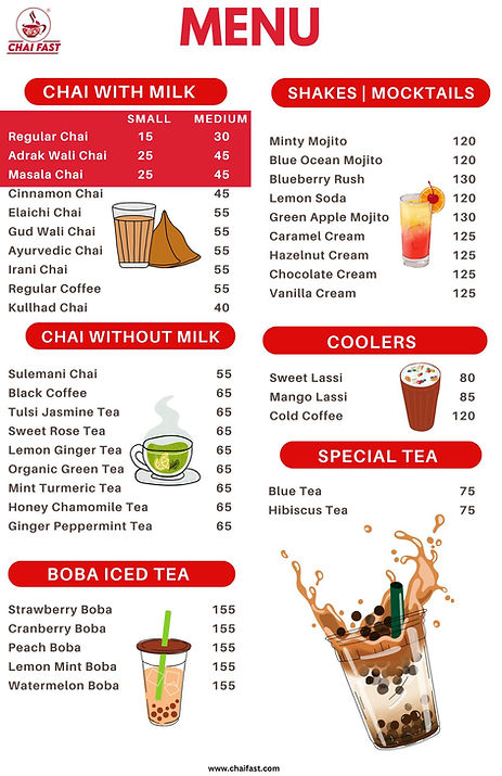 Our Menu is customizable based on location. Prices also may vary based on location. Franchise have the flexibility to add items !